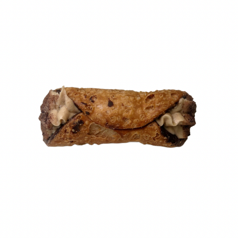 Een droom voor koffieliefhebbers! Deze cannolo is gevuld met een romige latte macchiato crème die perfect samensmelt met de knapperige pralin crisp in de vulling. De cacao-topping geeft een extra vleugje verfijning. Een perfecte balans tussen romig en knapperig, met de rijke smaak van koffie.
