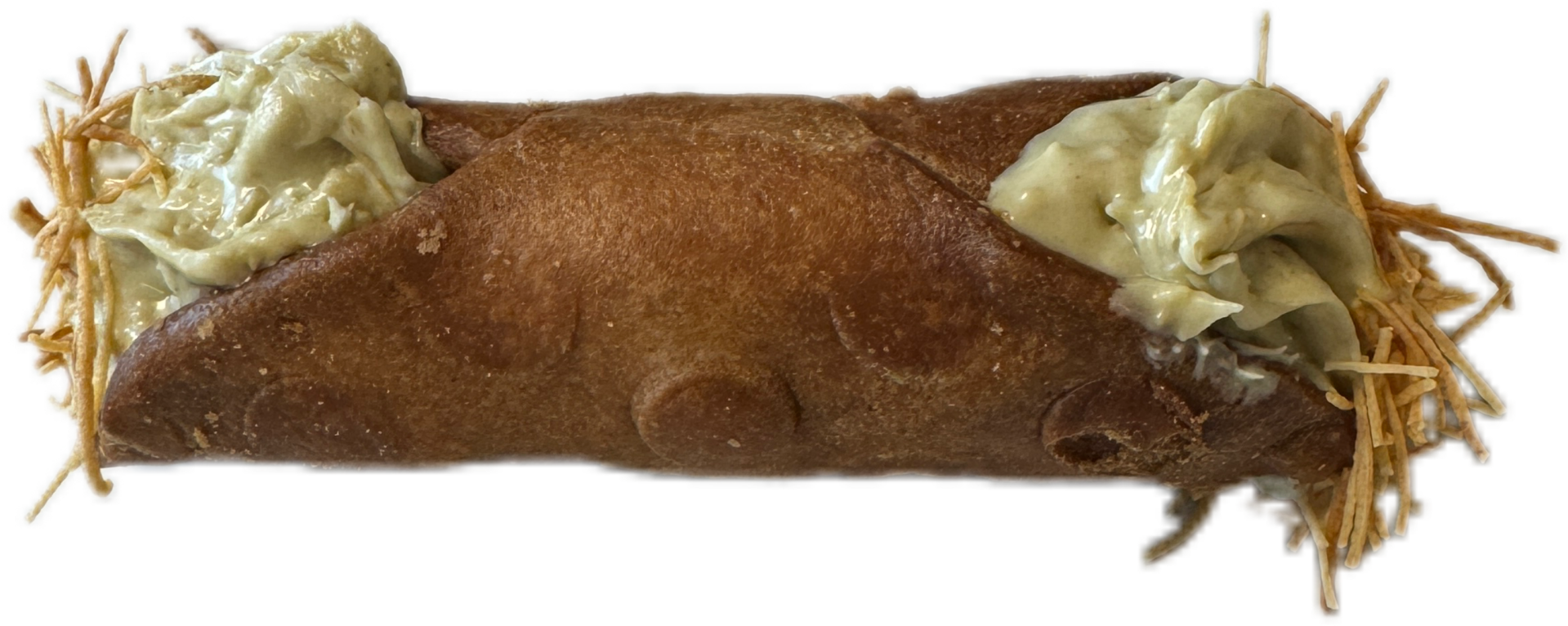 Een onweerstaanbare combinatie van zoet en zout! Deze cannolo is gevuld met een zijdezachte, romige karamelcrème, perfect in balans gebracht door een subtiel vleugje fleur de sel. Elke hap smelt op je tong en wordt afgemaakt met delicate karamelchocolade krullen, die zorgen voor een extra laagje luxe. Een perfecte traktatie voor liefhebbers van verfijnde, rijke smaken!